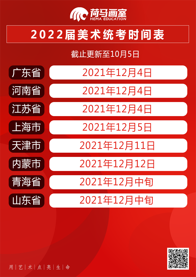 截止10月5日,已有8个省份公布了2022届美术联考时间: