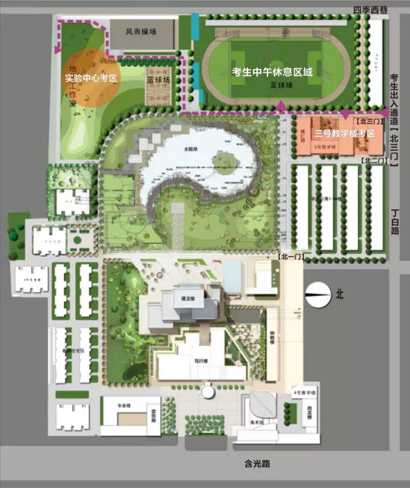2.考试当日,学校设置足球场为考生中午休息区域,学校内未向考生提供用餐,请考生自行在校园外就餐。