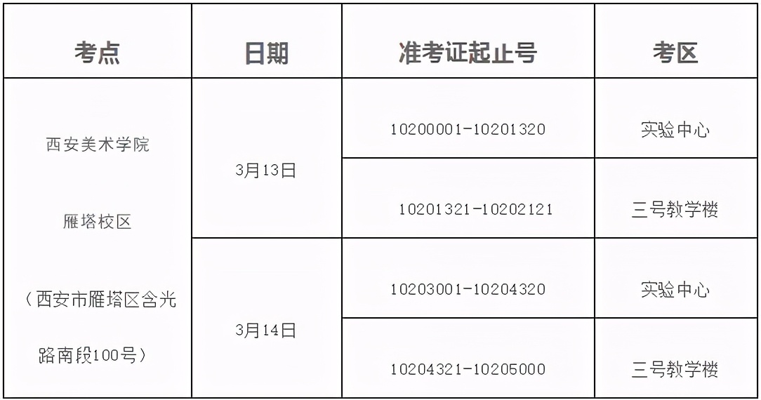 1.考试当天6:30起考生凭专业课校考准考证和二代居民身份证,从考点规定的通道进出。由西安美术学院雁塔校区北三门(丁白路中段)特定通道步行进出(请自行存放交通工具),;考生进入考点时人与人之间应保持一定距离(原则上不小于1米)。